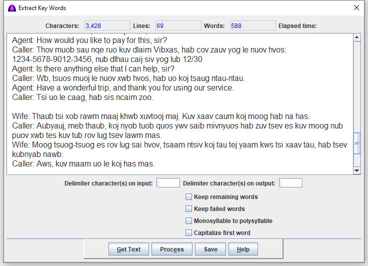 Click the Process button to extract, and note that this window is replaced with the extracted texts.